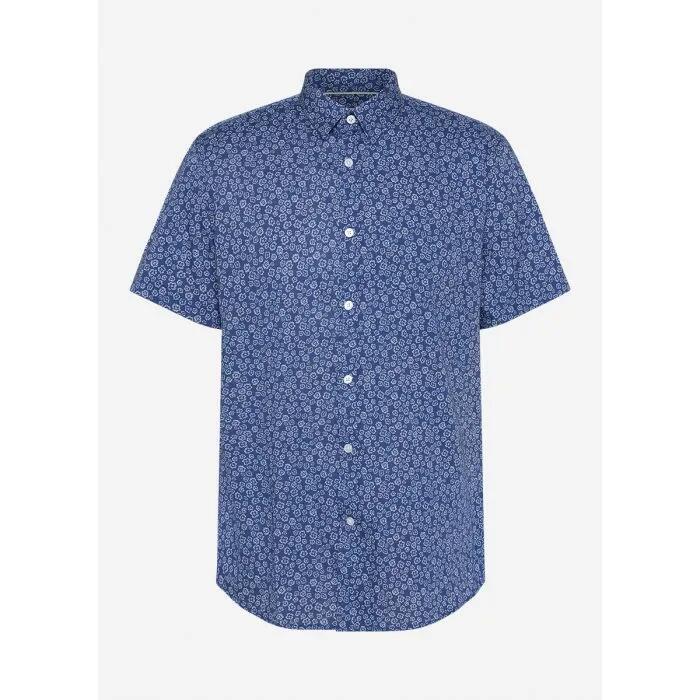 Beautiful in blue, this short sleeve shirt pairs an intricate floral print with contrast button detailing, found within the Marcs-branded white button front closure. Flowing effortlessly through a stretch cotton blend, the shirt offers a regular fit with curved shaping through the hem, completed