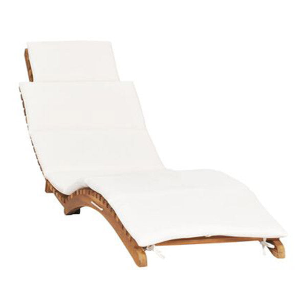 FOLDING SUN LOUNGER WITH CREAM WHITE CUSHION SOLID TEAK WOOD Relax and take a load off on this wooden sun lounger! This sunbed features an ergonomically curved shape, allowing you to lie down and fully rest.