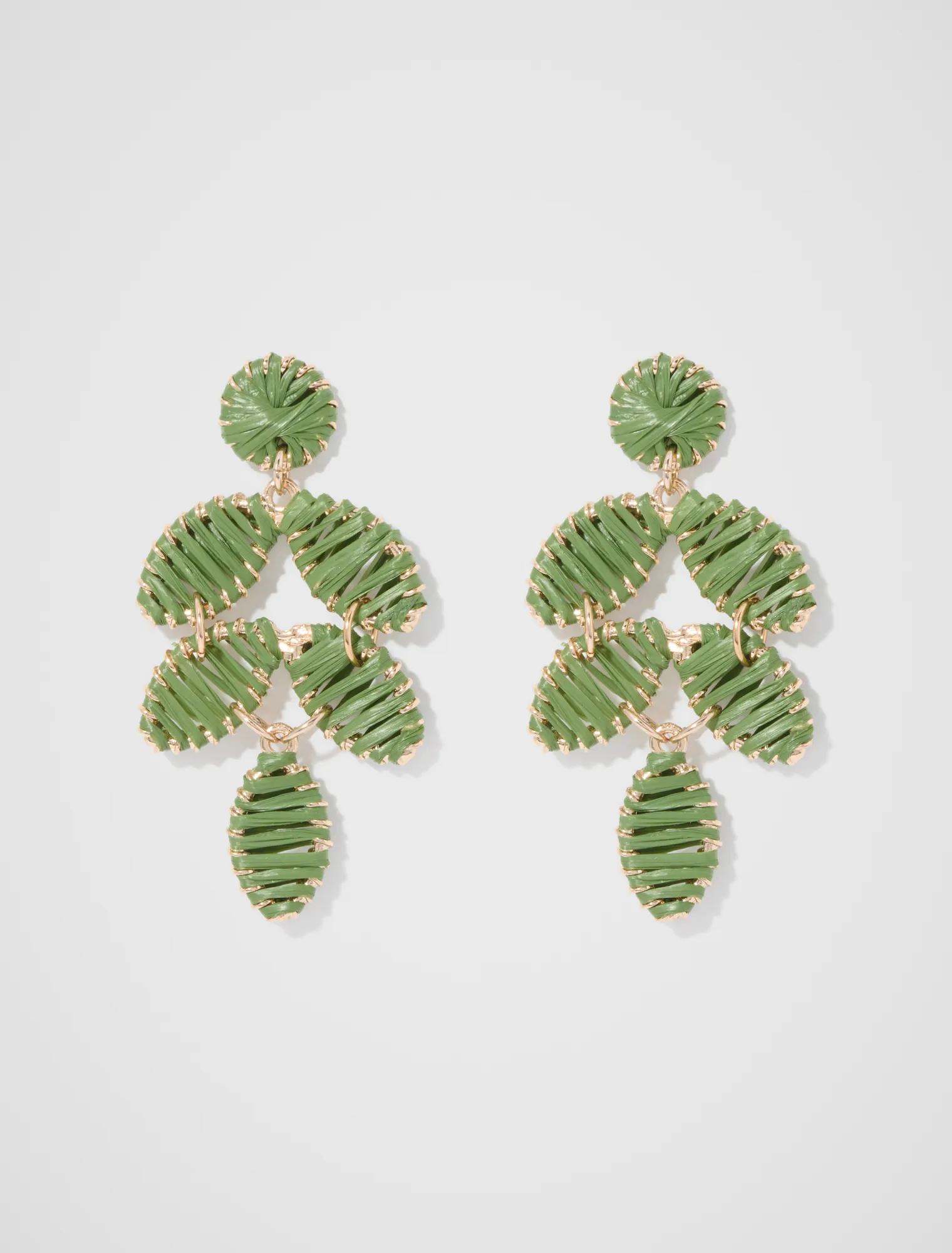 Forever New Women’s Abigail Long Petal Weave Earrings in Green/Gold