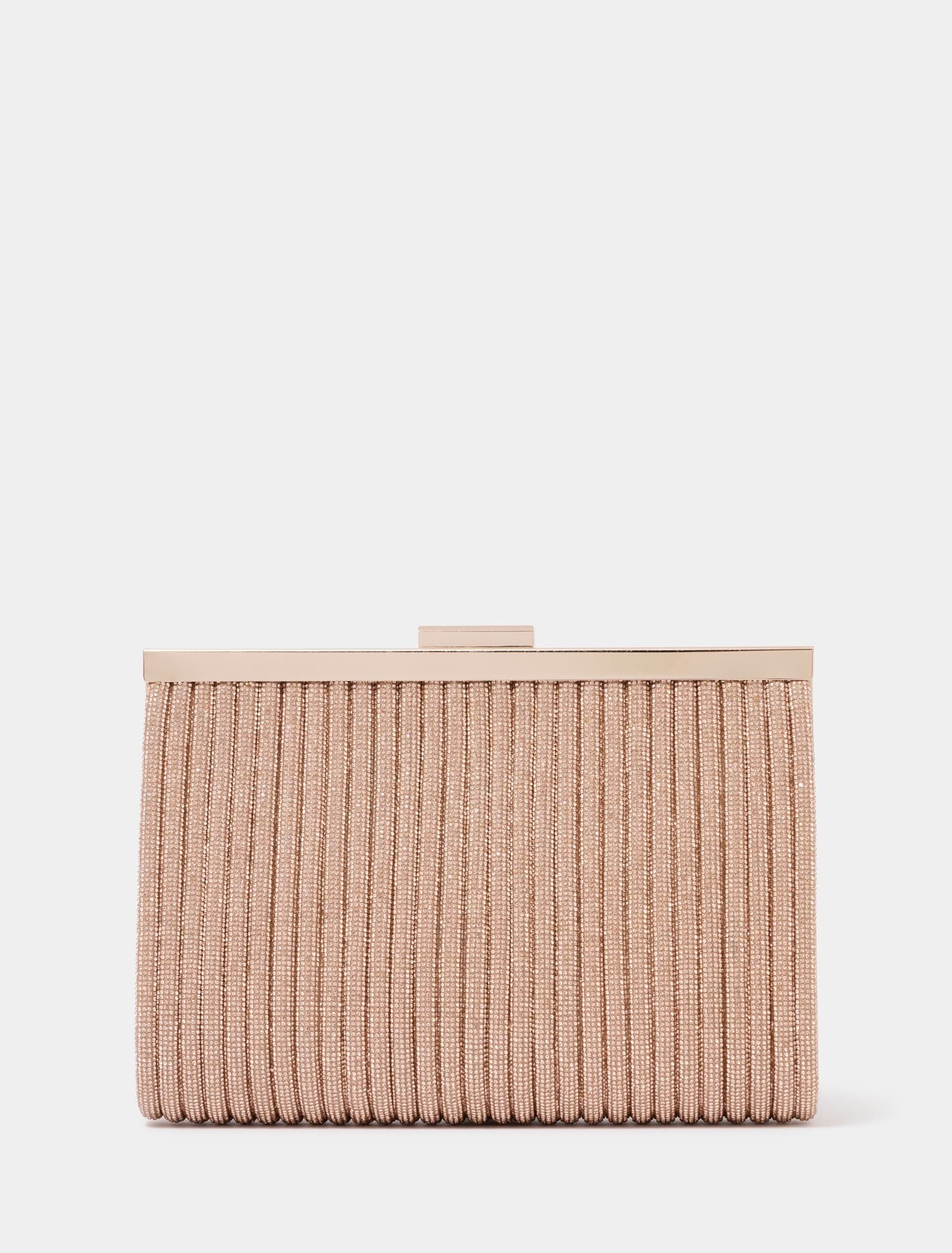 A sparkling diamante clutch to complement the most elegant maxi or midi dress adding glitz and glam for an eye-catching wedding guest look. Diamante-embellished outerRibbed panel designMagnetic snap closureOptional chain strapGold-tone hardwareFits most standard smartphones Forever New Women̵