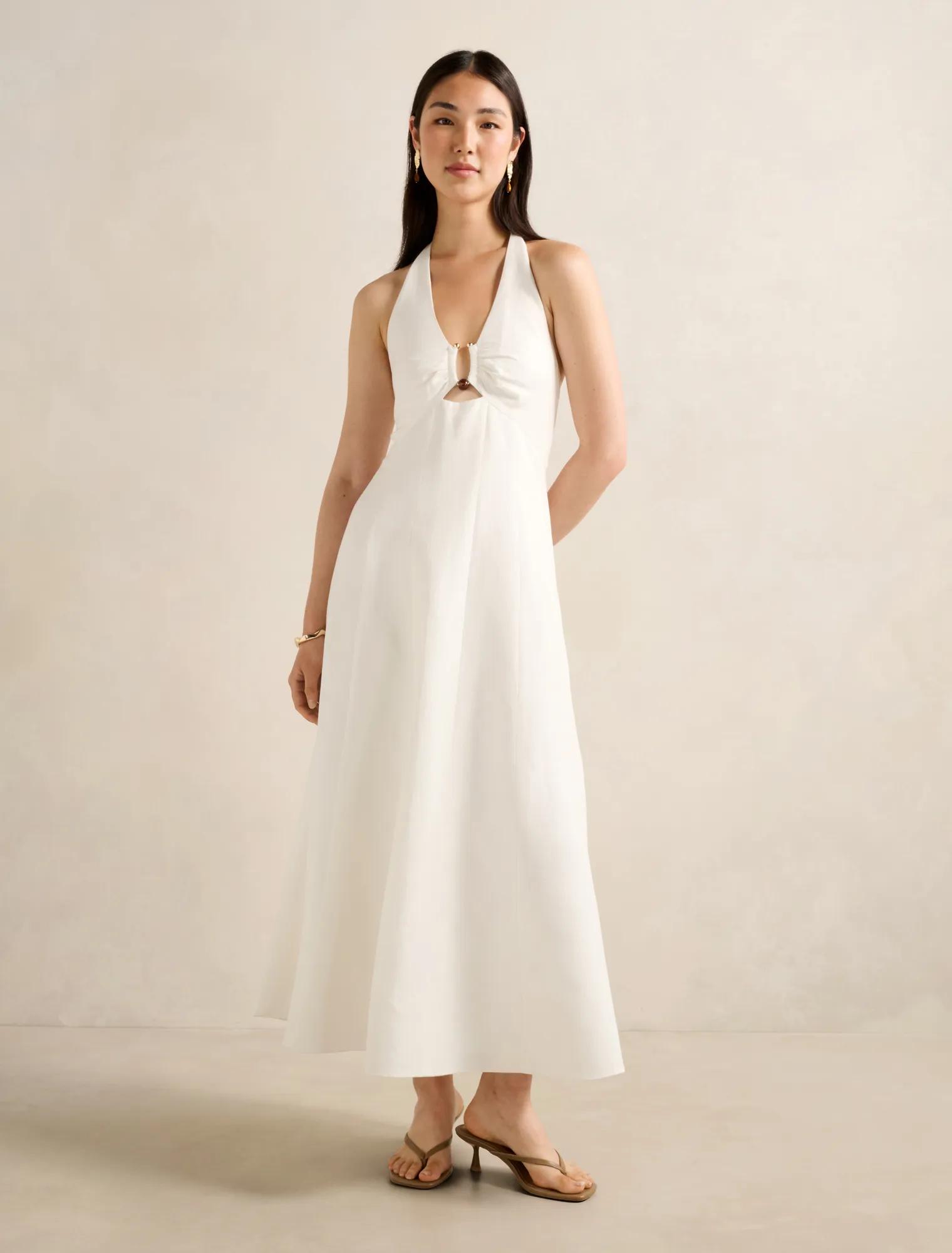 Forever New Women’s Angie Hardware Halter Linen Midi Dress in