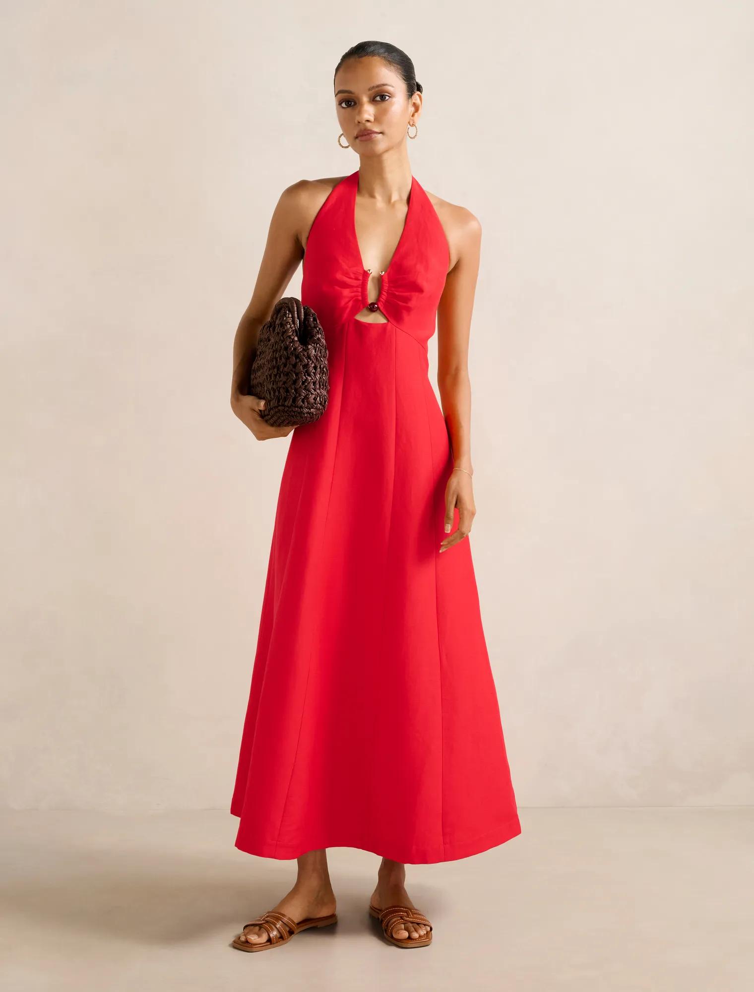 Our Petites range is perfectly proportioned to fit 5’3/161cm and under so you won’t need to worry about alterations. An elegant halter neck midi dress with gold-toned hardware perfect for show-stopping gala event or formal dinner styling.