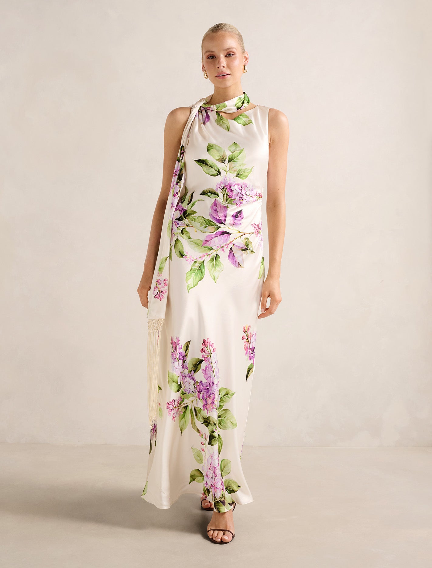 Forever New Women’s Ariane Tassel Scarf Satin Maxi Dress in