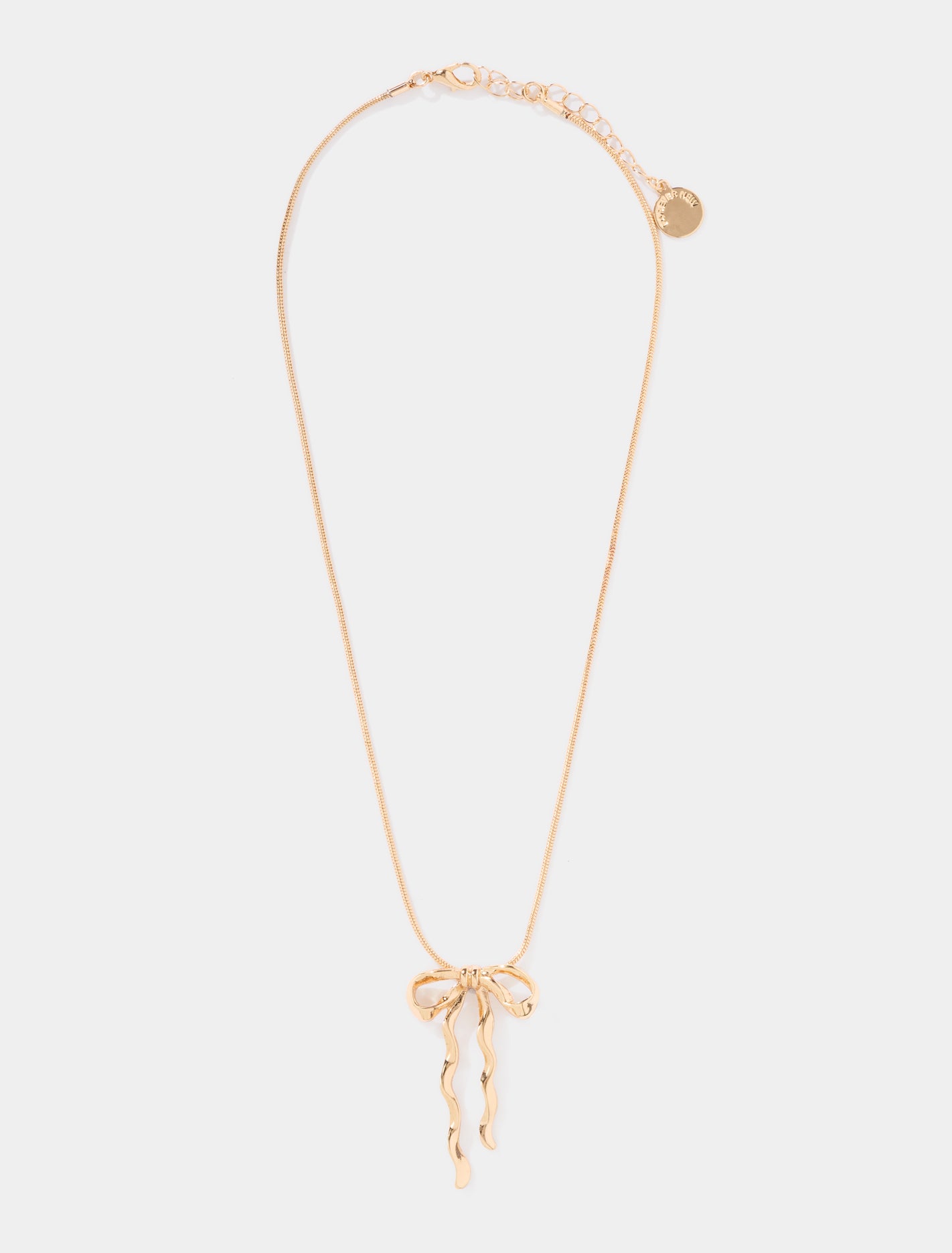 Elevate your style with this delicate necklace. Fine chain design, Bow-shaped pendant Flowing ribbon detailing, Adjustable length, Gold-tone setting, Lobster clasp fastening Forever New Women’s Brianna Metal Bow Necklace in Gold