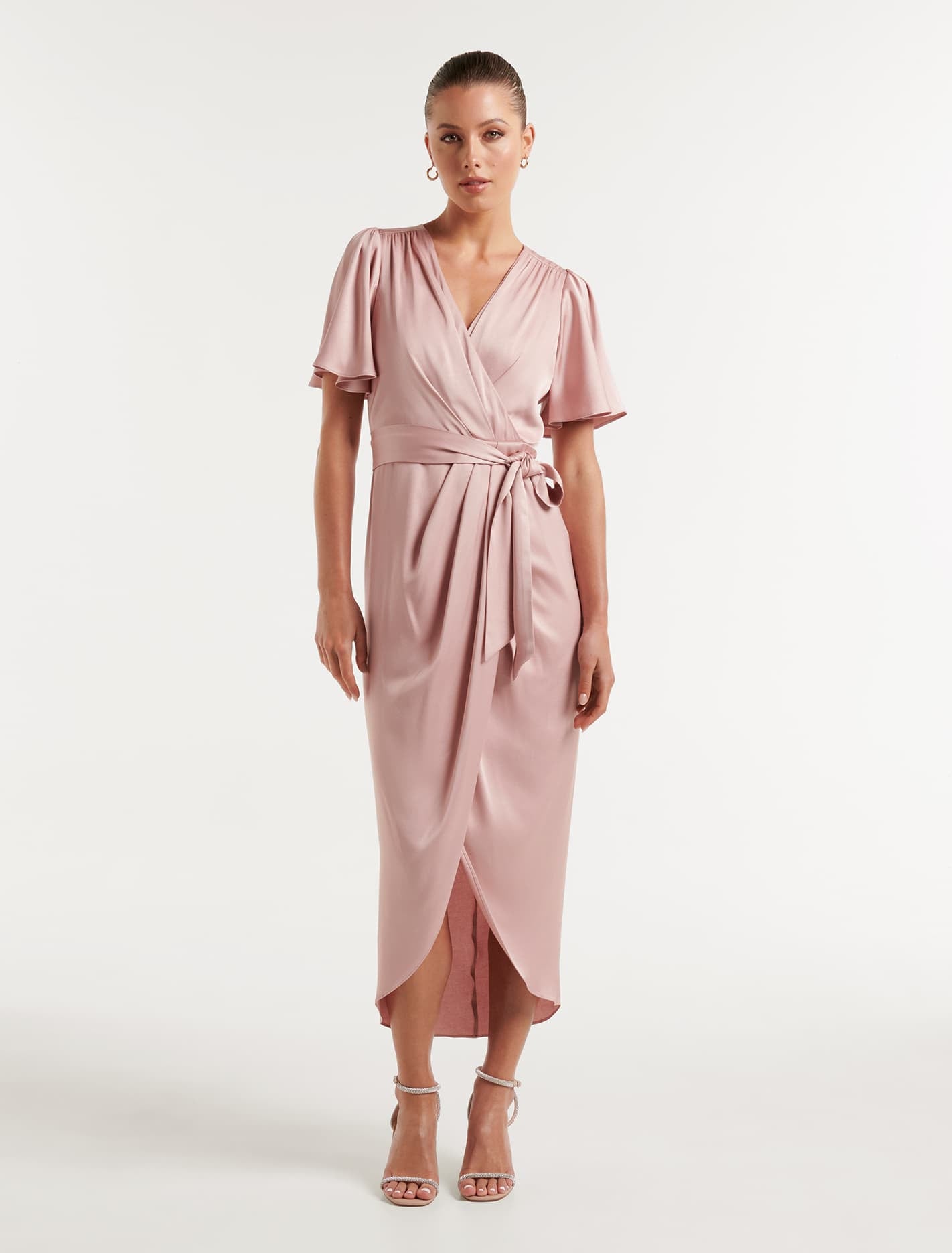 Forever New Women’s Carolina Satin Midi Dress in Blush