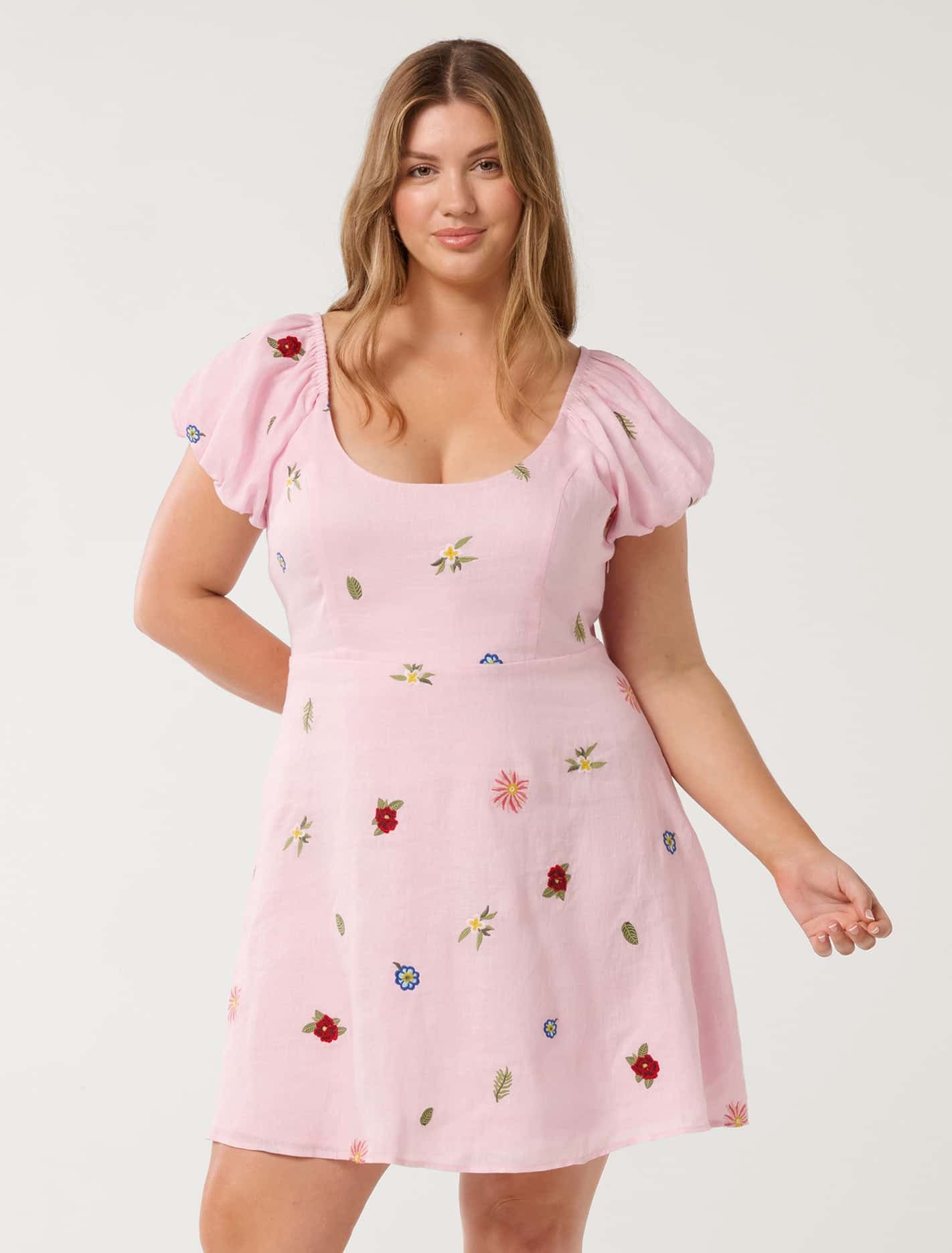 Forever New Women’s Clara Curve Plus Size Embroidered Linen Mini