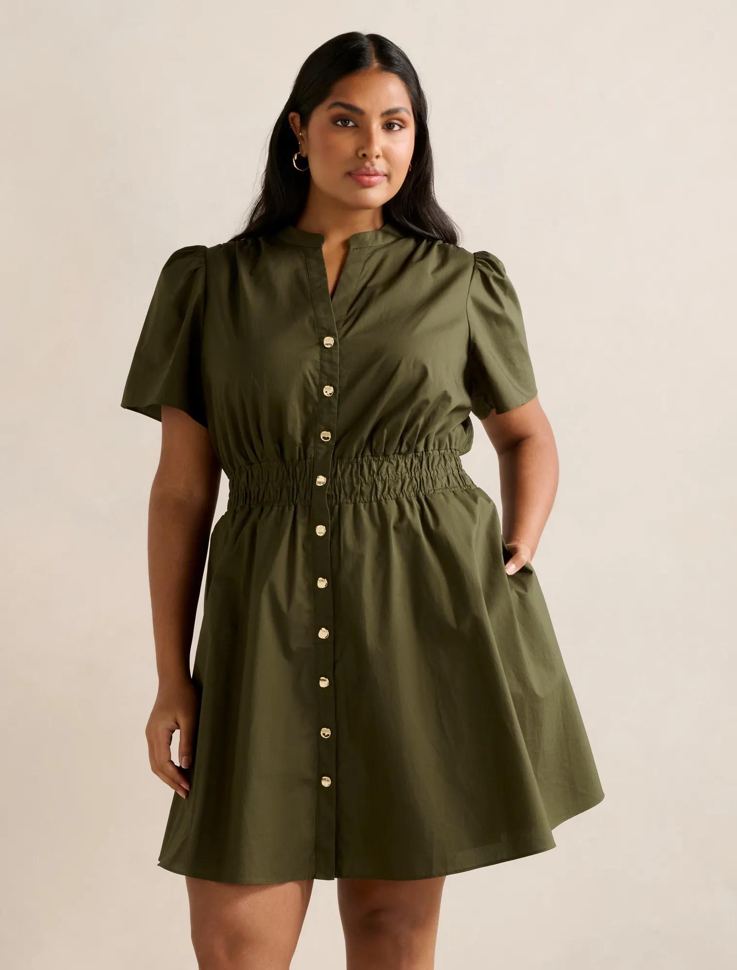 Our Curve collection is designed for sizes 16 to 24 to fit and flatter in all the right places. A button-down mini dress to pair with strappy sandals transitioning from work to weekend wear in style.