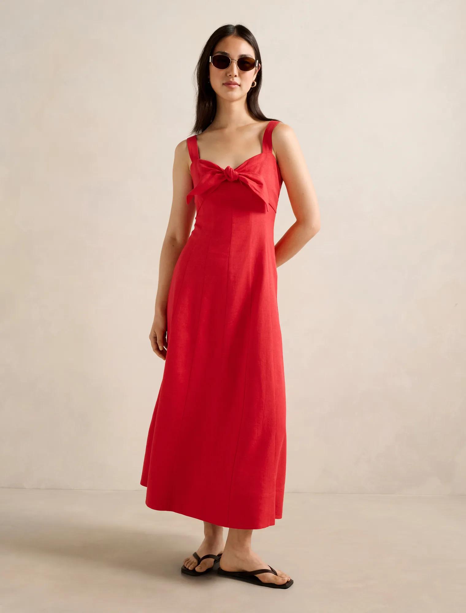 Forever New Women’s Kara Tie Front Linen Midi Dress in