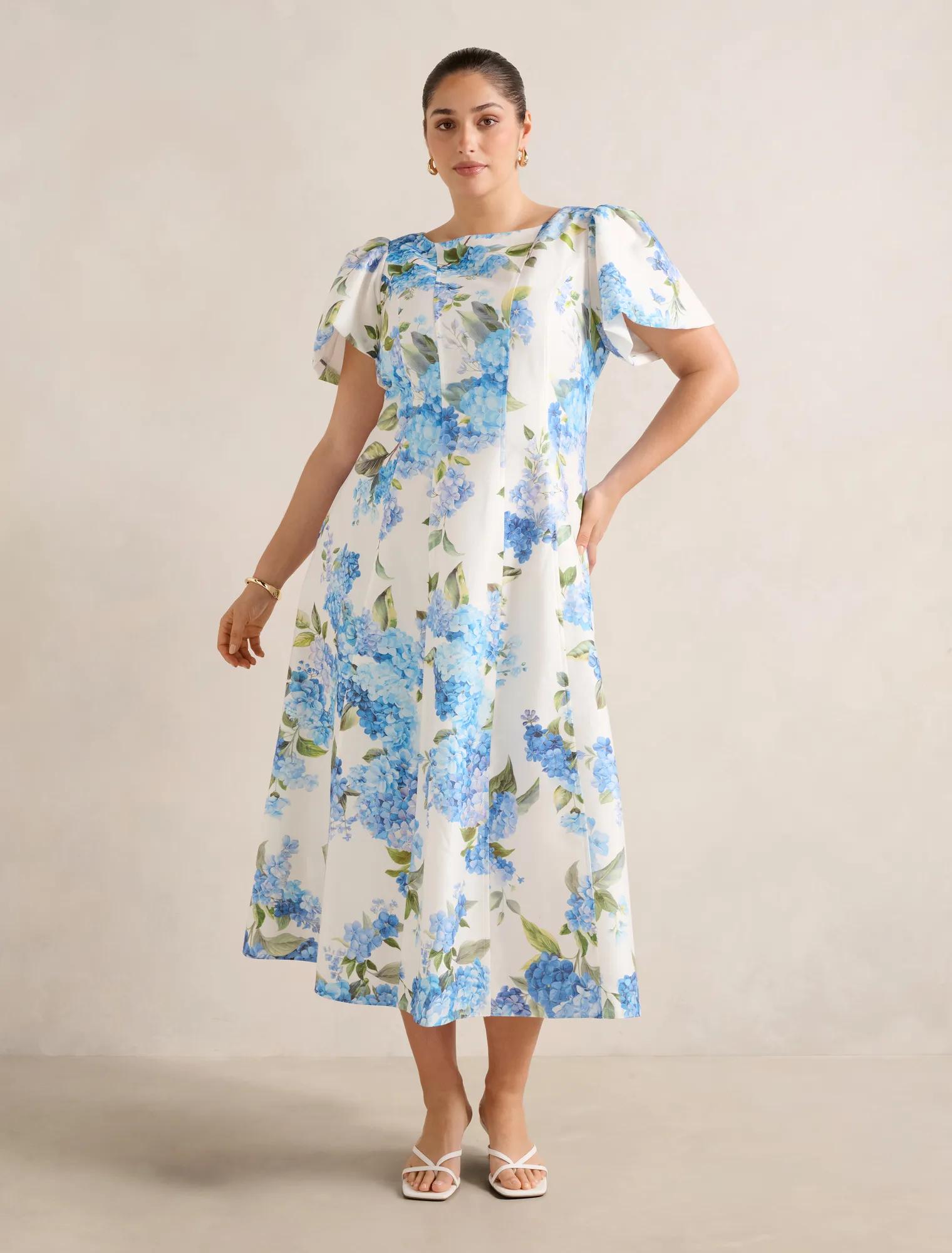 Our Curve collection is designed for sizes 16 to 24 to fit and flatter in all the right places. An elegant floral midi dress to pair with white strappy heels perfect for a head-turning cocktail or wedding guest look.