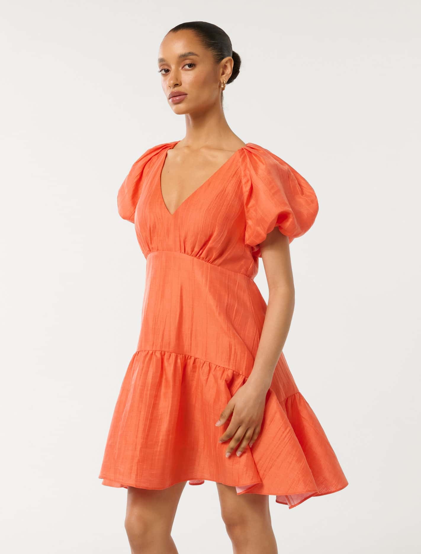 Forever New Women’s Melody Petite Puff-Sleeve Mini Dress in Orange