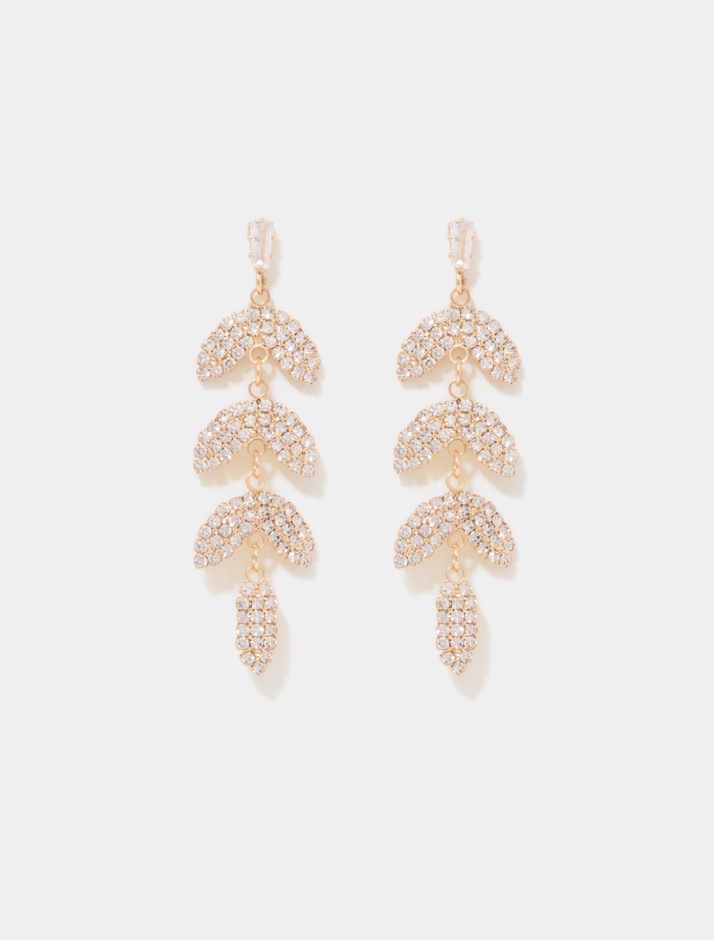 Accessorize your look with this crystal drop earrings for an elegant touch on special occasions. Tiered leaf-drop designCrystal embellishmentInterlock chain detailingGold-tone settingPush-back fastening for pierced ears Forever New Women’s Melody Stone Petal Drop Earrings in Gold/Crystal