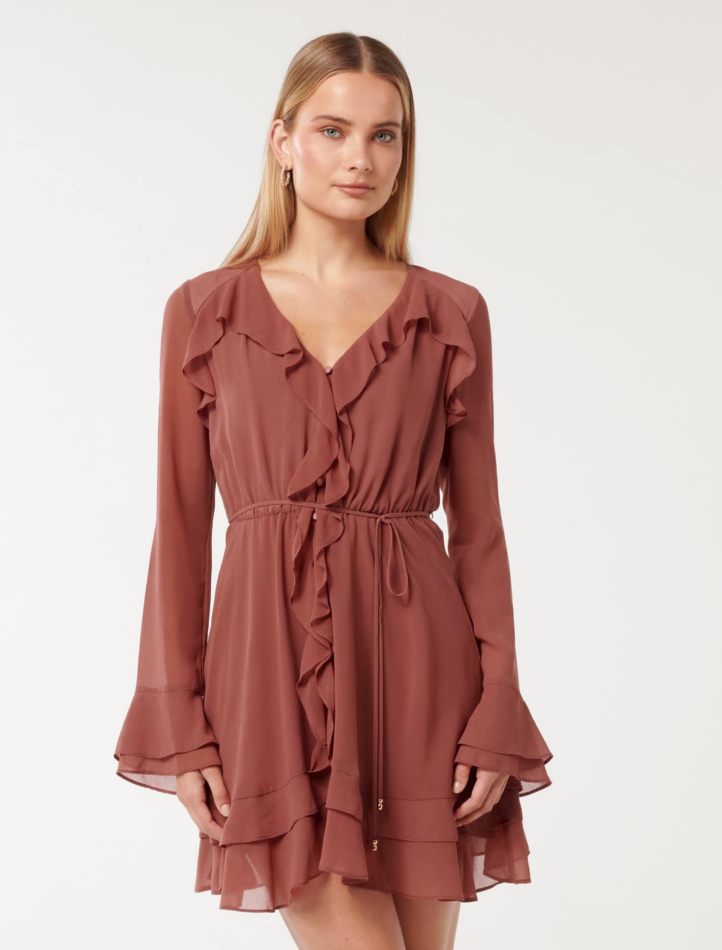 Forever New Women’s Piper Ruffle Long Sleeve Mini Dress in
