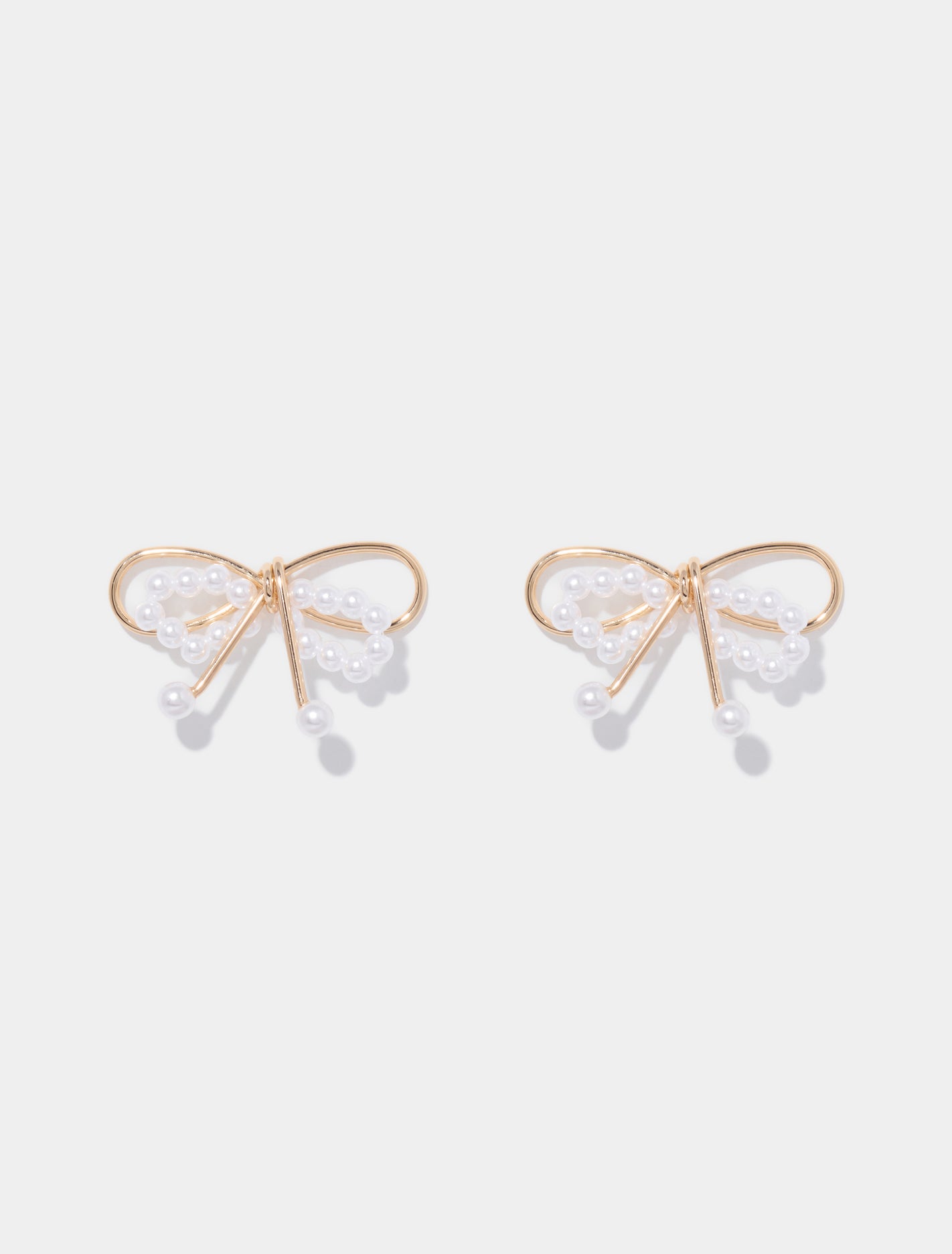 Forever New Women’s Sage Bow & Metal Earrings in Gold/Pearl