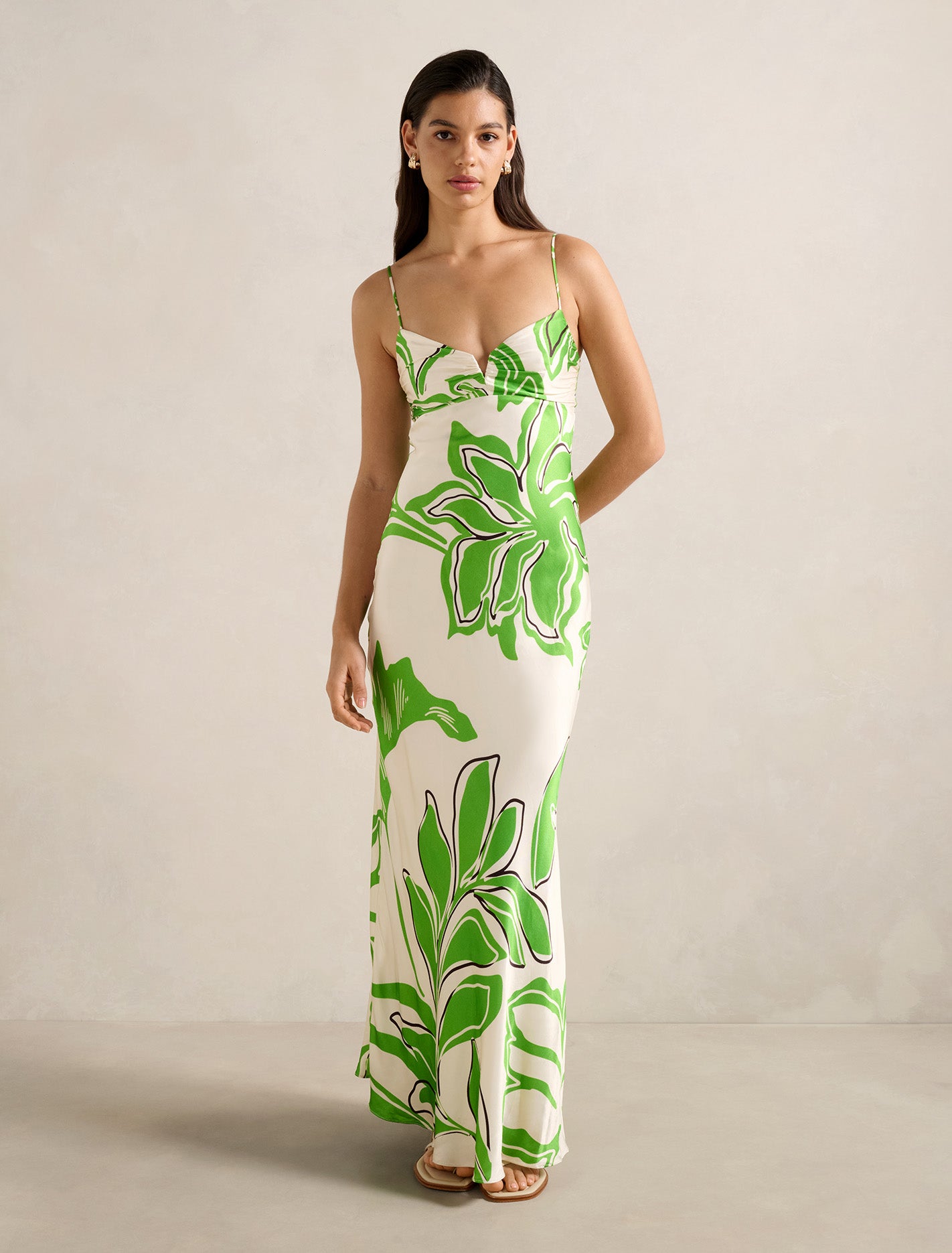Forever New Women’s Sloane Printed Satin Maxi Dress in Green