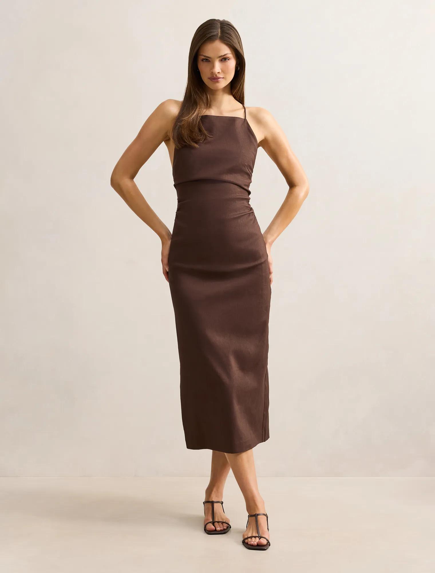 Forever New Women’s Stella Stretch Linen Backless Midi Dress in