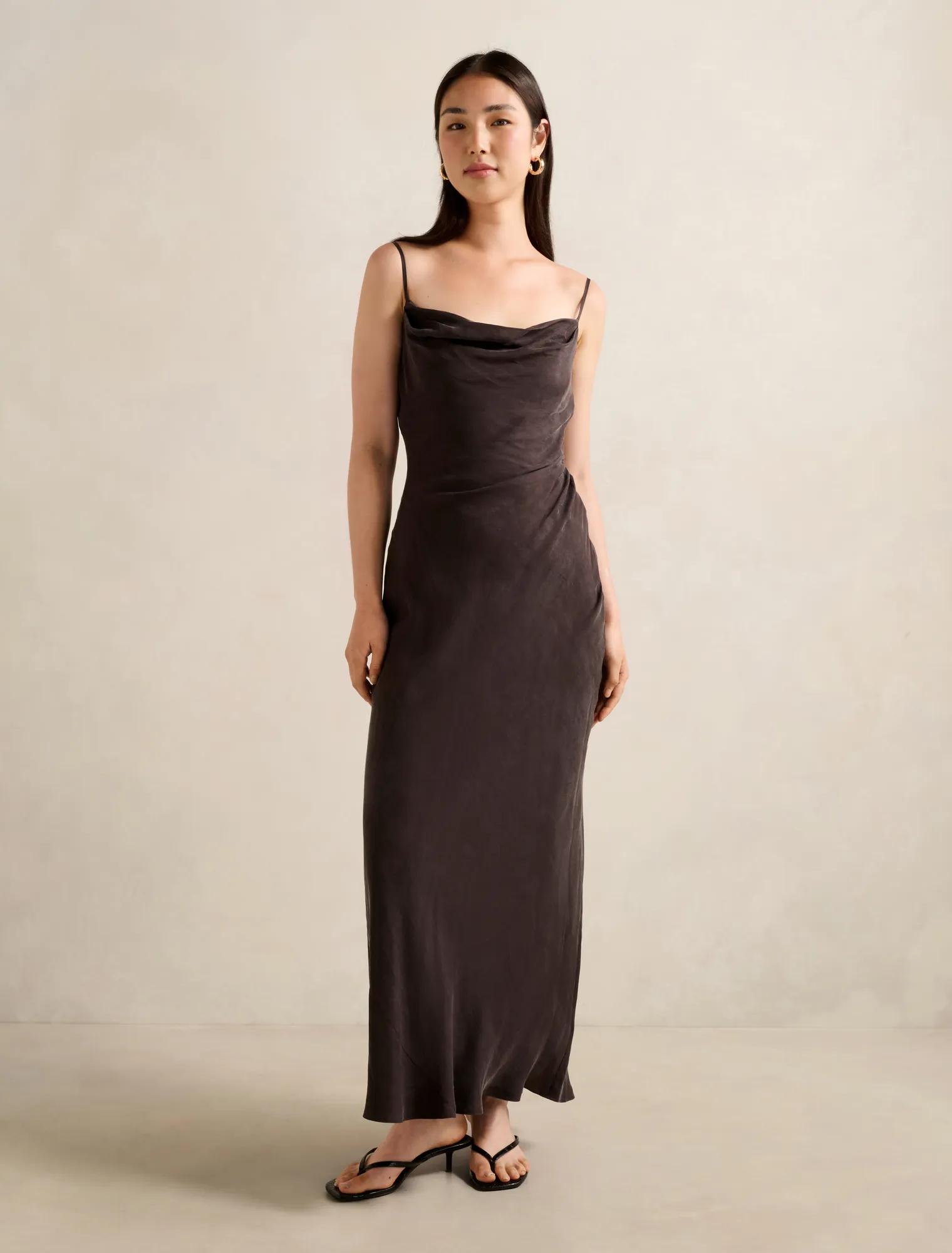 Forever New Women’s Zoe Cupro Midi Dress in Chocolate Noir