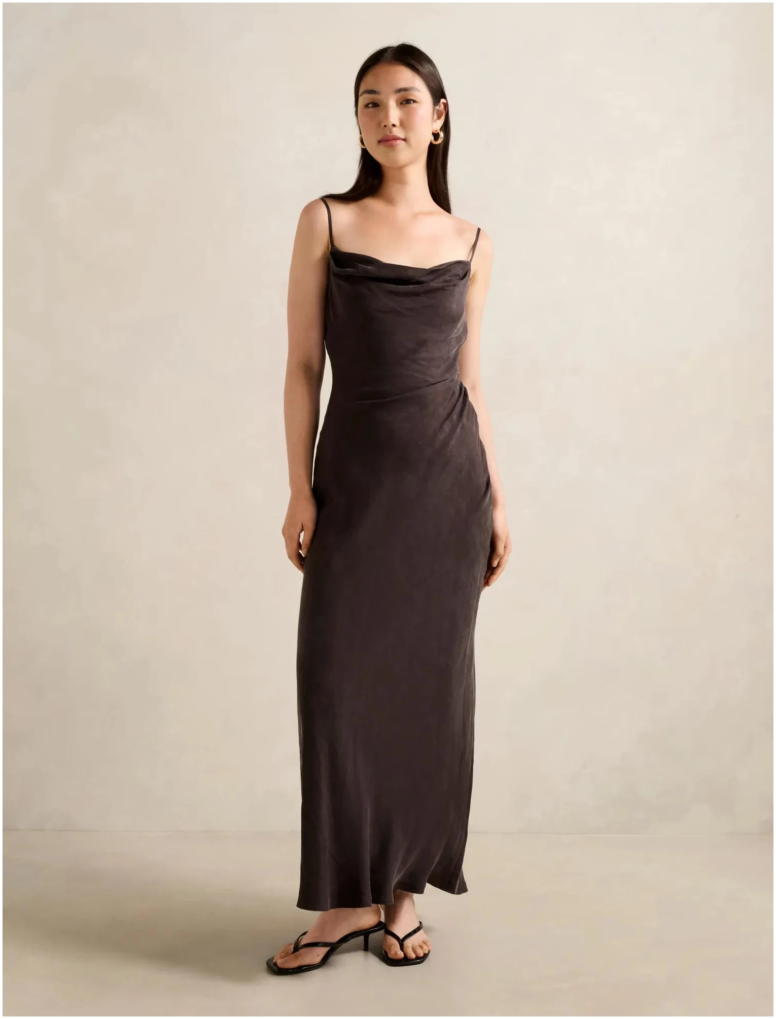 A statement-making midi dress to style with strappy heels or flat sandals perfect for reception dinners and beachfront parties alike. Regular fit, Front apex to hem: 120cm (Size 10)Lightweight woven fabrication, Square neckline with draped edge, Adjustable spaghetti straps, Light gathering at the