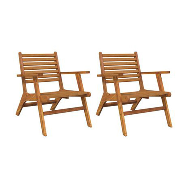 GARDEN CHAIRS SOLID ACACIA WOOD 2 PCS These wooden garden chairs provide a perfect place for you to relax and enjoy the sunshine in your garden or patio. These lounge chairs are made of solid acacia wood, making them stable and durable.