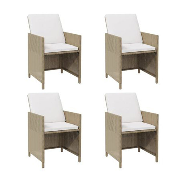 GARDEN CHAIRS WITH CUSHIONS 4 PCS POLY RATTAN BEIGE Add a touch of modern style with this simplistic garden chair set. It is specially designed to complete your outdoor dining set or simply stand out on its own.