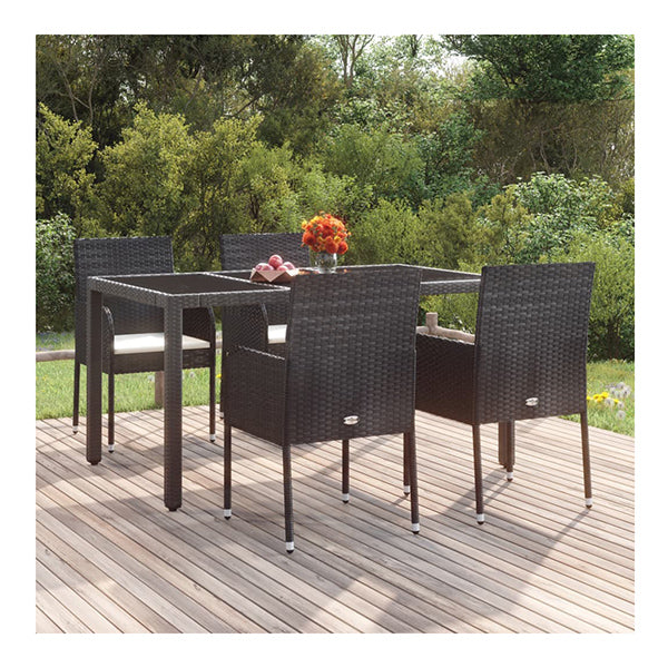 GARDEN CHAIRS WITH CUSHIONS 4 PCS POLY RATTAN BLACK These garden chairs are perfect addition to your garden and terrace, creating a lasting impression! Durable material: Poly rattan is an exceptional resistance material and durable in different weather conditions.