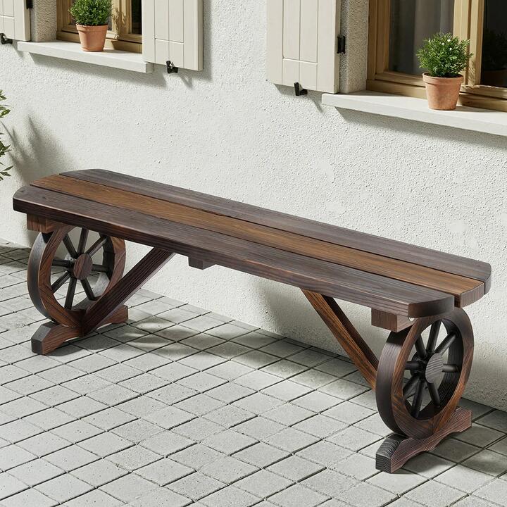 Saddle up for rustic charm with our Wagon Wheels Bench! This handcrafted Fir wood beauty combines old-west styling with modern durability, featuring authentic wagon-wheel Legs. Built to seat two comfortably while supporting up to 320kg, its weather-resistant, UV-treated Fir wood naturally resists