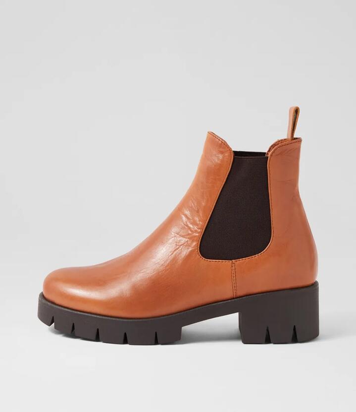Hampy Cognac Leather Ankle Boots