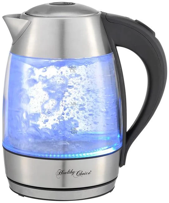 The Healthy Choice 1.7 Litre Glass Kettle with 360° Rotational Base is a sleek and modern kettle that is perfect for any kitchen. It features a glass body that allows you to see the water boiling inside, and a 360° rotational base that makes it easy to pour water from any angle.