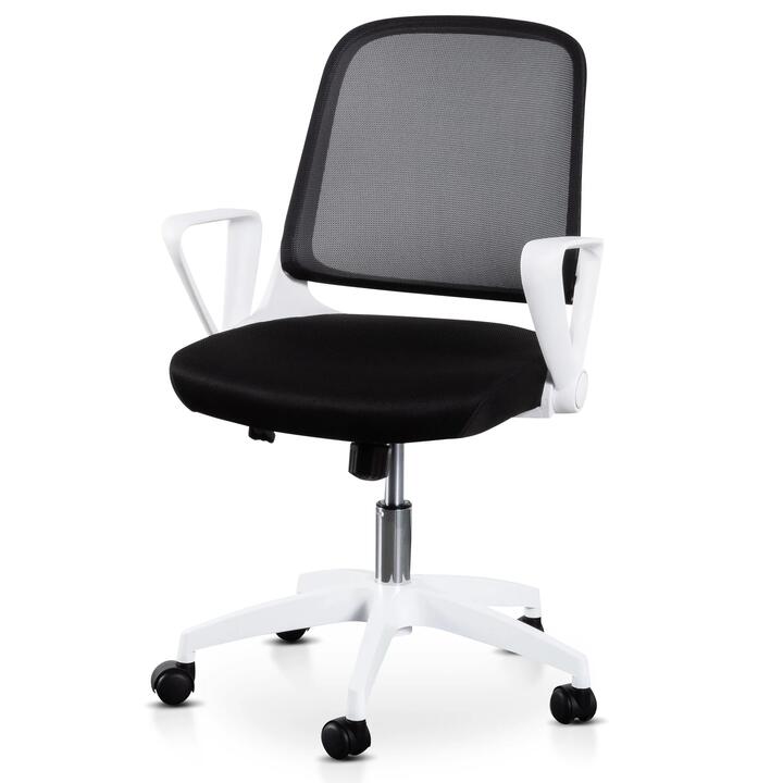 Infuse your working space with the contemporary looks and stylish functionality of Heston Black Office Chair – White Arm and Base.