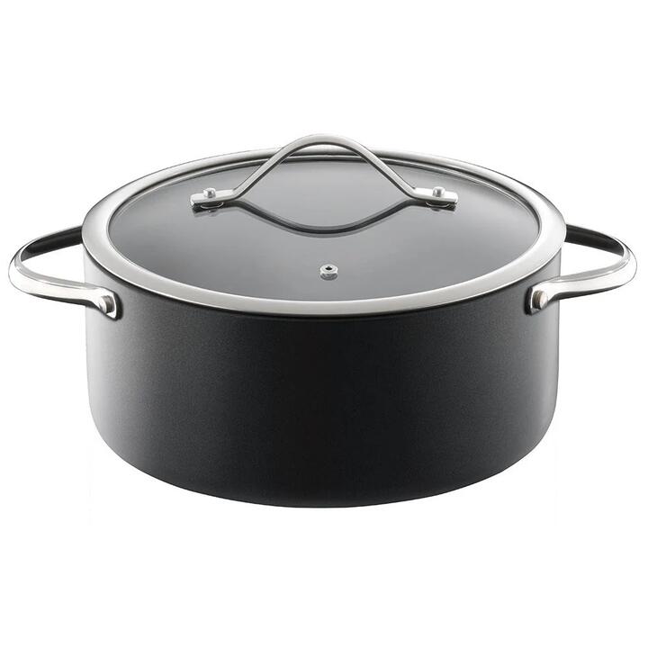 Get cooking with the Baccarat iD3 Hard Anodised Casserole with Lid 24 x 11cm. The casserole has been hard anodised to create a super tough warp free surface and body, resulting in a pan that is twice as hard as stainless steel.