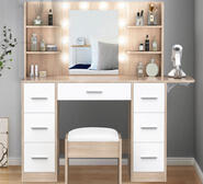 Your search for a reliable and smart storage solution ends here with the Ilaya 7 Drawer Wood White Dressing Table Set. It’s designed with seven spacious drawers and six open shelves, providing practical organization for all your beauty essentials.