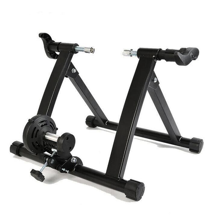 DescriptionIf you’ve just pulled on your bike shorts and cycling shoes when you notice the golf-ball-size rain drops hurtling from the sky, you need a cycling option that doesn?€?t involve the outdoors! This Magnetic Indoor Bicycle Trainer gives you the excuse you need to stay dry inside,