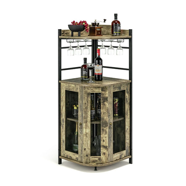 Industrial Corner Bar Cabinet With Glass Holder And Adjustable Shelf