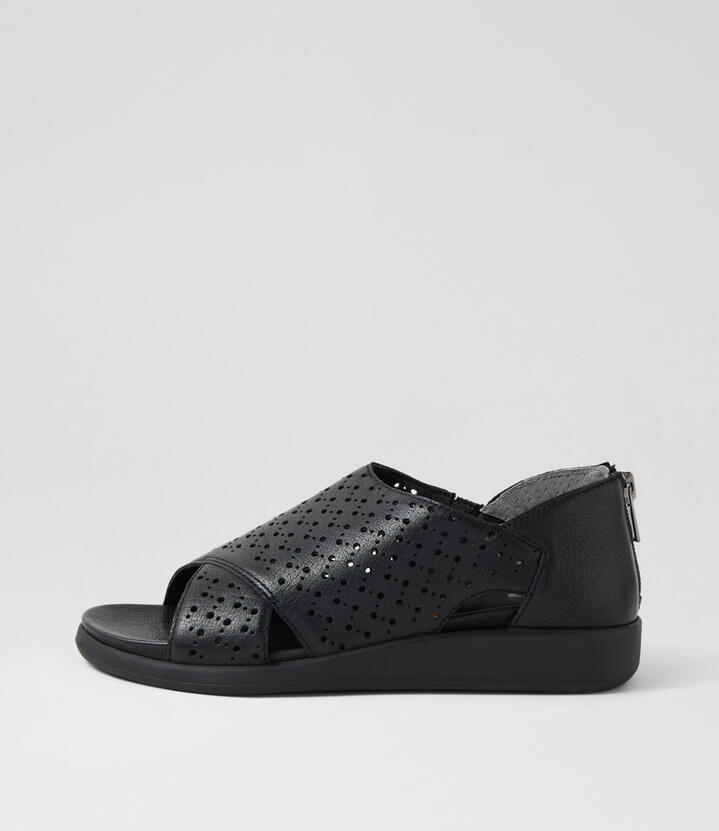 Issela W Black Leather Sandals