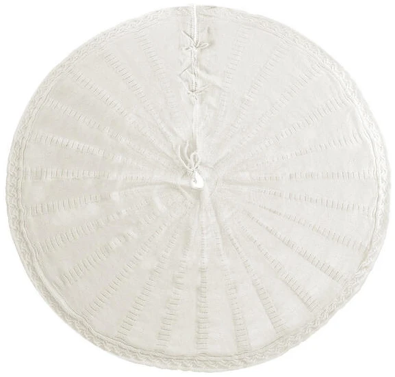 Enhance your holiday display with the Jingle Jollys Knitted Christmas Tree Skirt. Crafted from soft knitted fabric in sophisticated beige, this skirt features built-in bow-knot straps for secure placement.