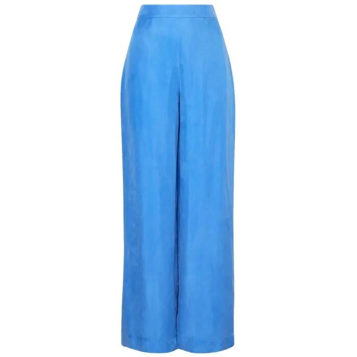 The Kairo Wide Leg Pant in Topaz Blue is tailored from fluid cupro, giving the silhouette a beautiful drape and soft sheen. Designed with a high-rise waist and full-length wide leg, it creates modern, elongated lines.