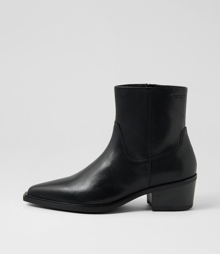 The Western trend takes on a minimalist appeal in these leather ankle boots by Vagabond. KELSEY’s pointy, elongated silhouette and block heel work together to lengthen the leg, resulting in sleek lines and effortless style.