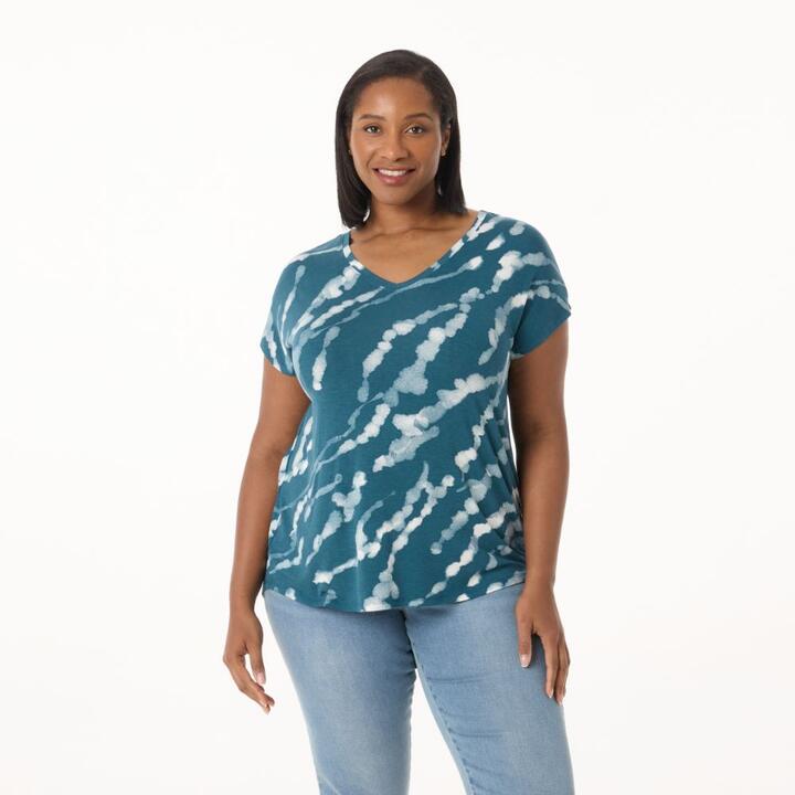 Khoko Collection Women’s Print V Neck Short Sleeve Tee