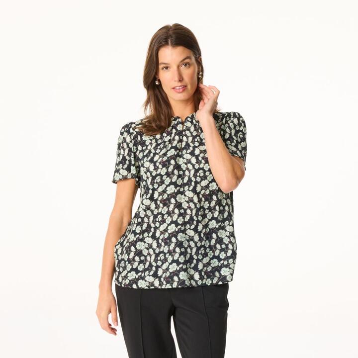 Khoko Smart Women’s Frill Neck Pansy Print Blouse