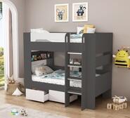 Kids Boe Single Bunk Bed With Shelves And Drawers Grey