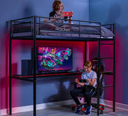 Achieve the ultimate gaming and resting sanctuary with the X Rocker HQ High-Sleeper Gaming Bed. A sturdy, elevated bed for quality sleep, and a full-width desk below for immersive gaming experiences.