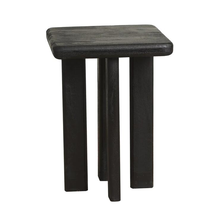 Solid mango wood construction with black-stained finish Natural wood grain subtly visible through dark coating Clean-lined, boxy form with contemporary proportions Compact footprint ideal for modern living spaces Sturdy design suitable for everyday use