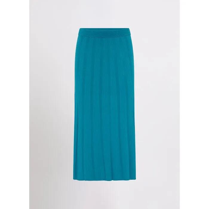 Captivating in its colouring, this knit midi skirts not only looks beautiful in Caspian blue, it also flatters effortlessly with a flared A-line design. Offering seamless movement within a lightweight viscose blend, the pull-on skirt sits neatly at mid-rise with an elasticated waistband, while co