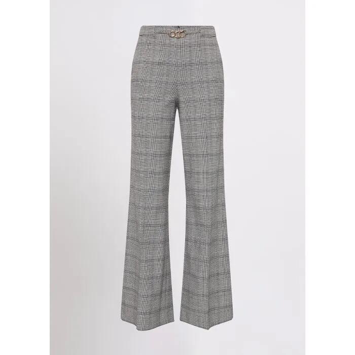 Elevate your wardrobe with the Love Maze Flare Pant in striking Black and White. These full-length pants feature convenient side pockets and stylish back welt pockets, complemented by a YKK invisible zip at the center back.