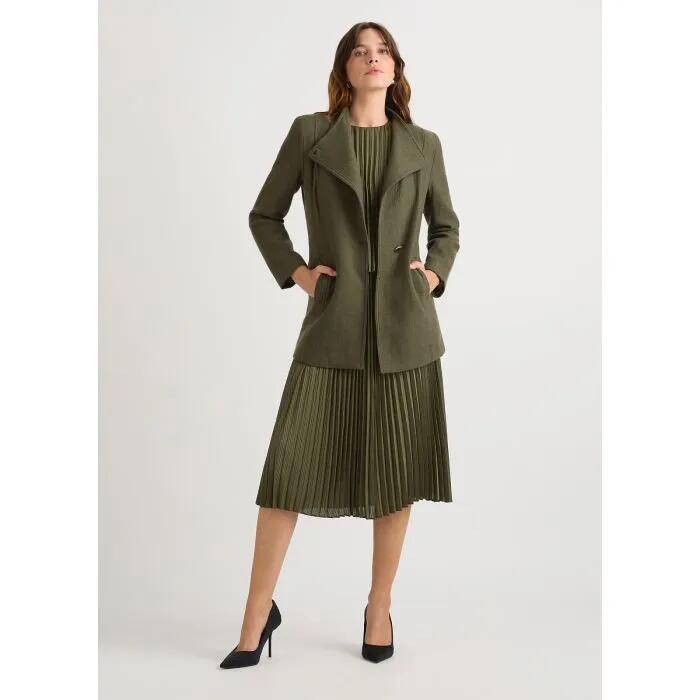 The Luisa Felted Wool Coat in Olive is a quintessential piece designed for versatility, crafted from 100% Australian Merino wool, ensuring exceptional breathability and a luxurious texture. This coat is ideal for various occasions, seamlessly transitioning from work to weekend events.