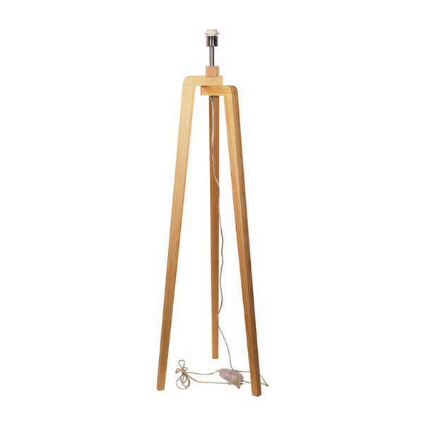 LUND FLOOR LAMP SCANDI TIMBER TRIPOD BASE ONLY LUND a scandi inspired natural timber floor lamp base only, shade available separately. The natural timber is finished with a light clear coating. On/off foot switch located along the cord.
