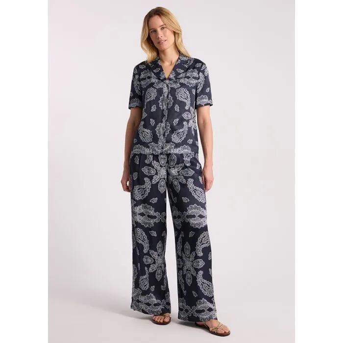 The Maisha Viscose Shirt in Navy Multi combines resort-style ease with city polish. With a silky, cool-to-touch hand feel, this shirt is perfect for warm weather outfitting. The regular fit features a relaxed resort collar and short sleeves, showcasing a paisley print that brings depth to the nav