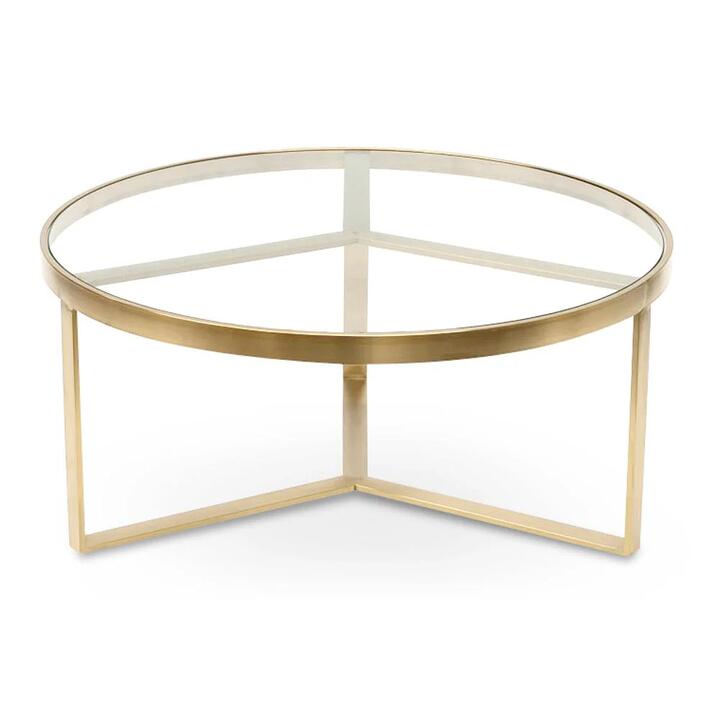 Marcelo 90cm Round Glass Coffee Table – Brushed Gold Base