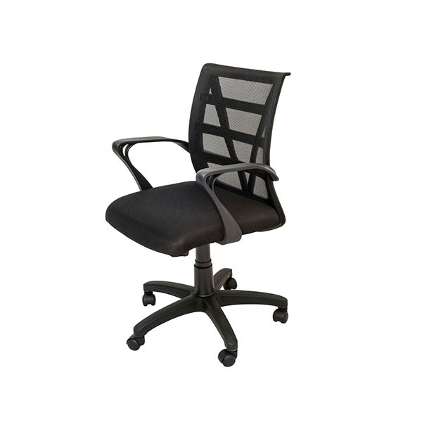 MARS HOME OFFICE/MEETING CHAIR BLACK FEATURES Single Point Lock Mechanism 100 Kg Weight Rating Black Mesh Back Rest With PVC Slat Support Black Upholstered Seat Pan Black 5 Star Base On Castors Fixed Black PVC Loop Arms SGS Tested SPECIFICATIONS Warranty (Yrs): 3 Weight (Kg): 12 No.
