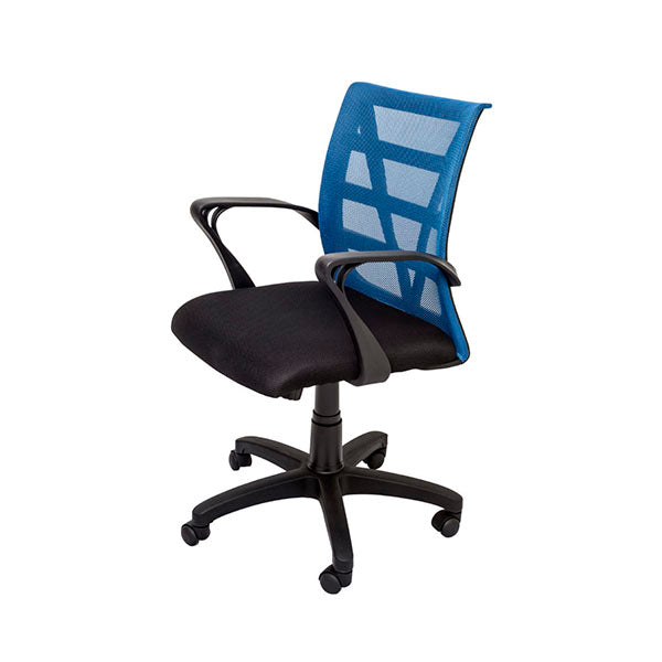MARS HOME OFFICE/MEETING CHAIR BLUE FEATURES Single Point Lock Mechanism 100 Kg Weight Rating Black Mesh Back Rest With PVC Slat Support Black Upholstered Seat Pan Black 5 Star Base On Castors Fixed Black PVC Loop Arms SGS Tested SPECIFICATIONS Warranty (Yrs): 3 Weight (Kg): 12 No.