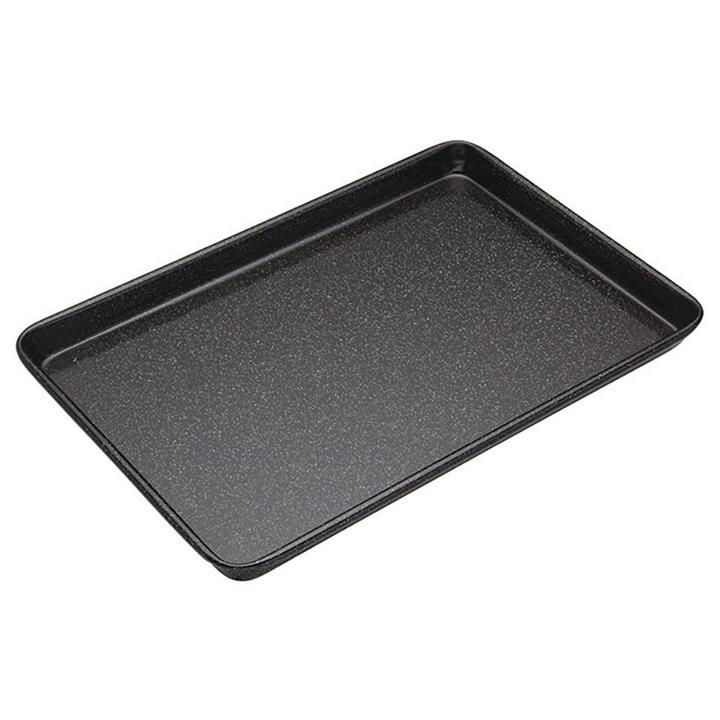 This 38 x 25 x 2.5 cm MasterPro Professional Vitreous Enamel Baking Tray is ideal for baking sheet cakes and batches of biscuits, pastries and cookies, it’s an essential piece of cookware for any kitchen.